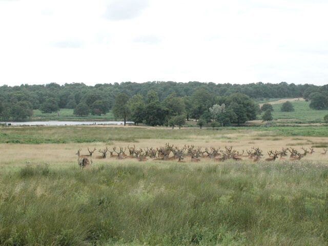 After a mile or so we came around a long bend and entered Richmond Park. Just as we did so, we saw a large stag contemplating the traffic circling furiously around the entrance.